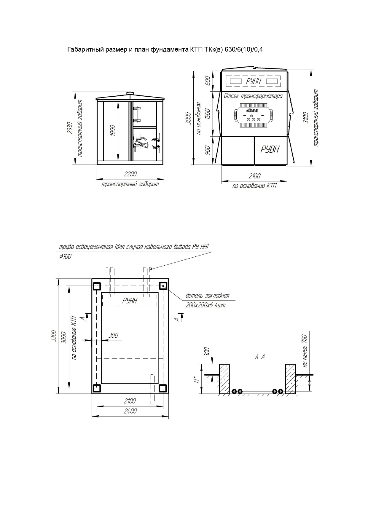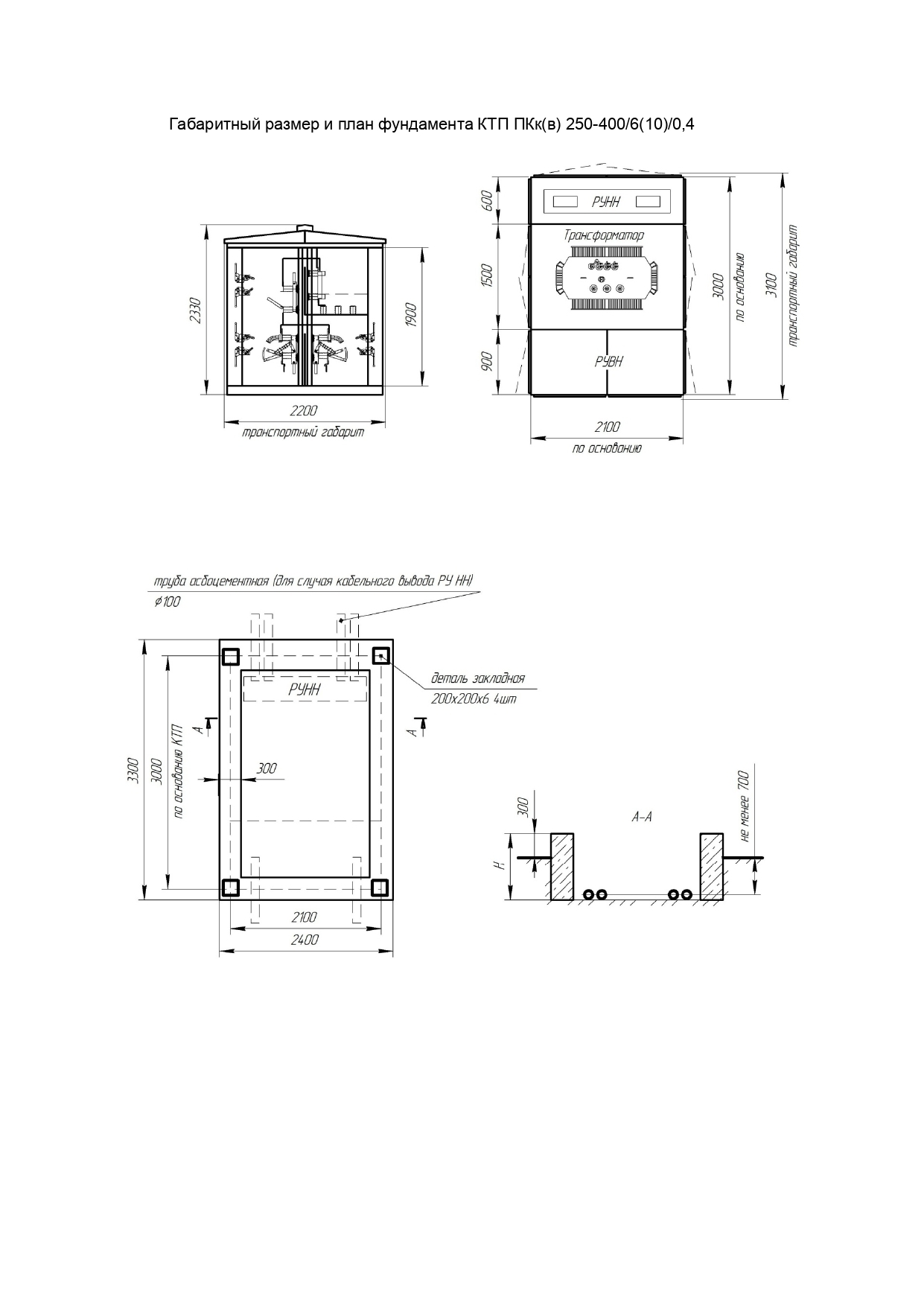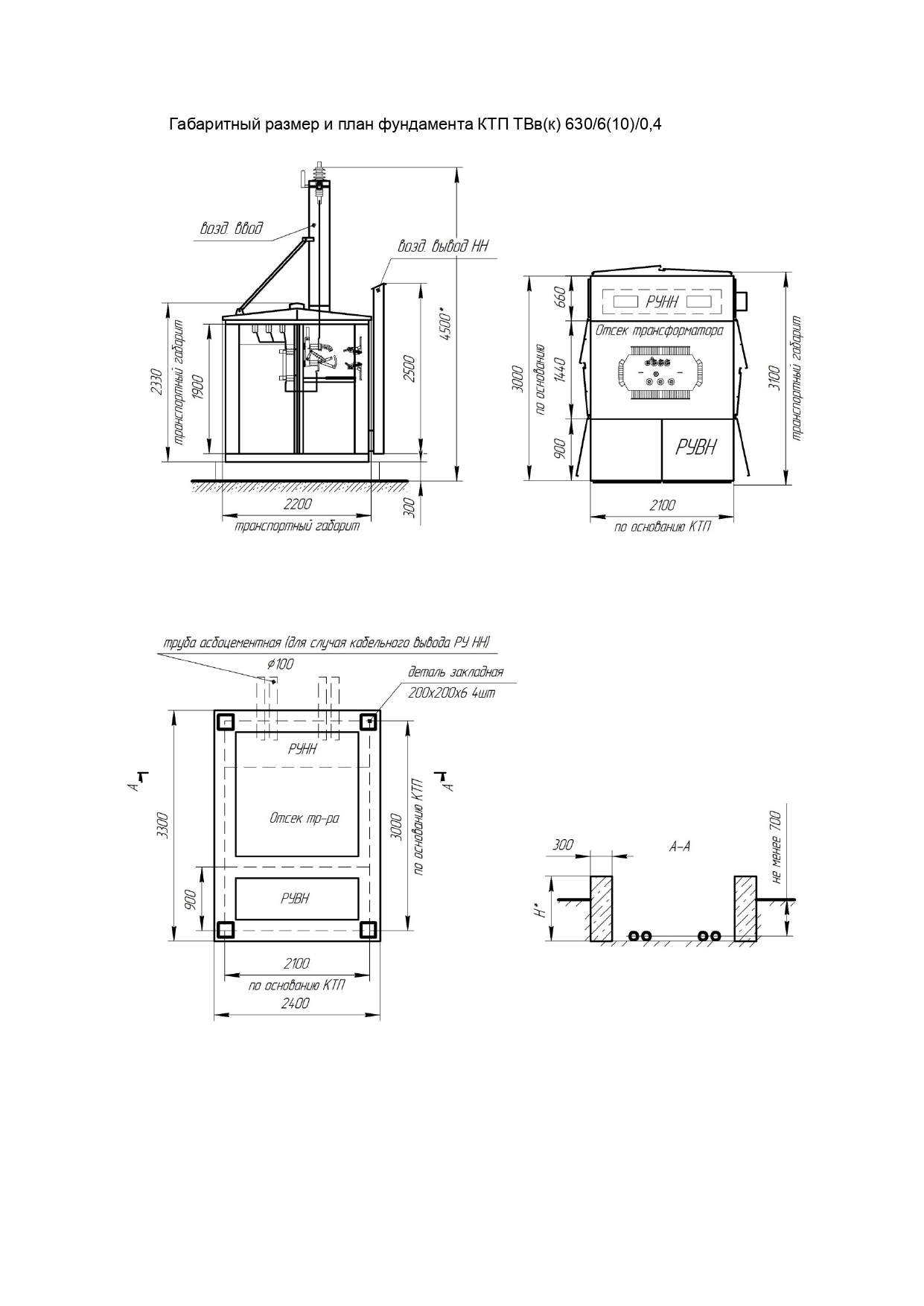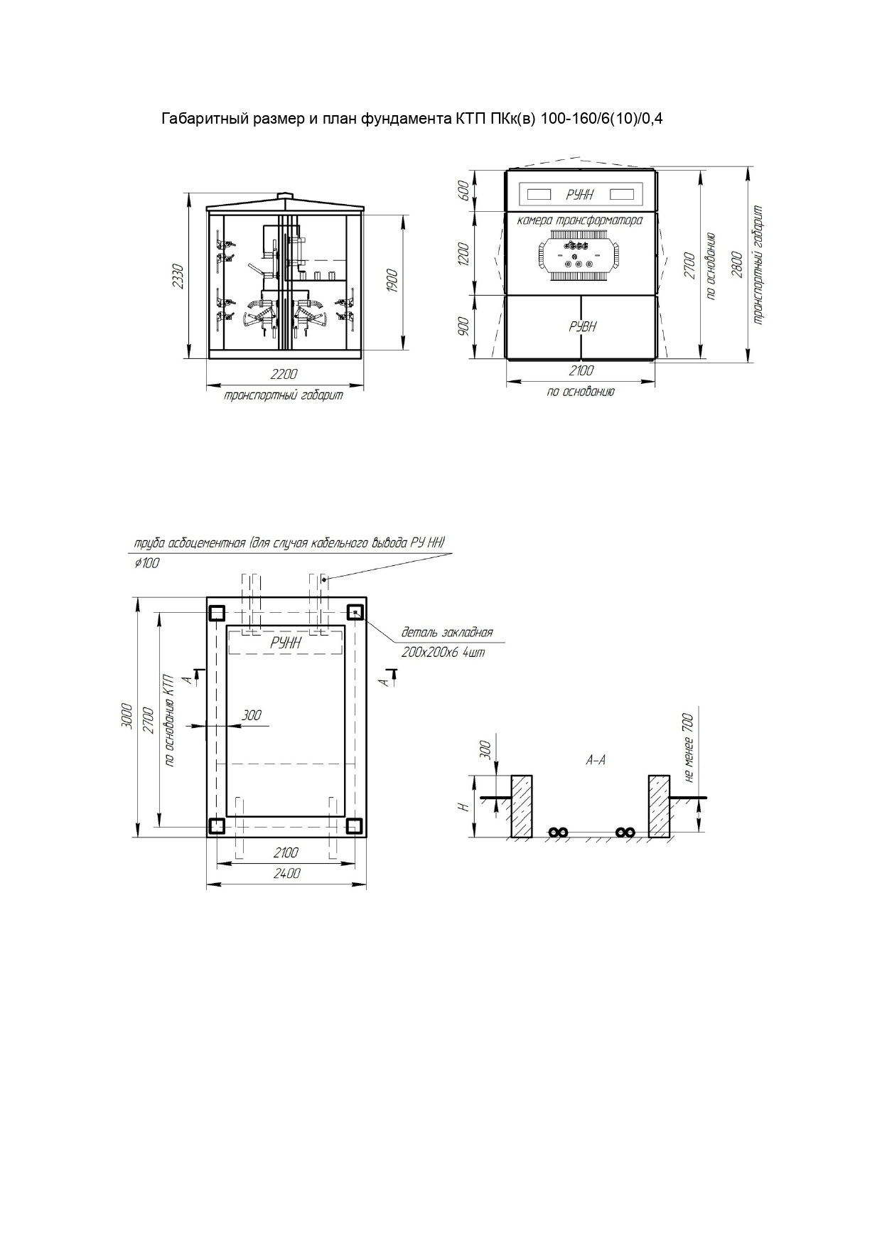 Конструкция КТП представляет собой стальной сварной корпус, состоящий из трансформаторного отсека и отсеков распределительных устройств высокого и низкого напряжения (РУВН и РУНН). Электроэнергия напряжением 6(10) кВ подводится к воздушному или кабельному вводу РУВН и далее подается на силовой трансформатор. Преобразованная электроэнергия напряжением 0,4 кВ поступает на ввод РУНН и далее распределяется по отходящим линиям. РУВН может быть выполнено на базе выключателей ВНА или BB/tel. РУНН может быть выполнено на базе автоматических выключателей и/или рубильников. КТП киоскового типа устанавливается на бетонное основание (фундамент).